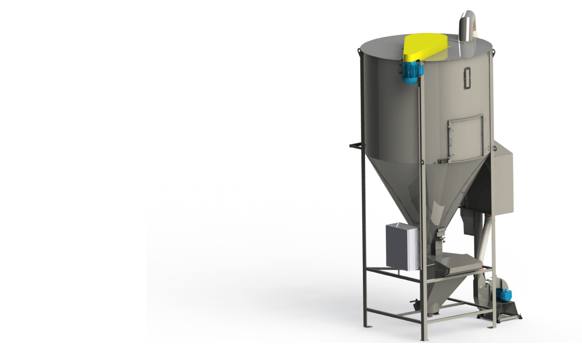 Nossos Misturadores Secadores Verticais são especializados em misturar, pigmentar e secar plásticos granulados e moídos. Disponíveis em tamanhos variados, de 1.000 a 25.000 litros, esses equipamentos garantem que seus materiais estejam prontos para a produção. Construídos em aço carbono ou aço inox, eles oferecem durabilidade e desempenho excepcionais. As opções, como calha de carregamento, rosca de carga, rosca de descarga e suporte para ensaque, permitem uma personalização sob medida para sua operação.